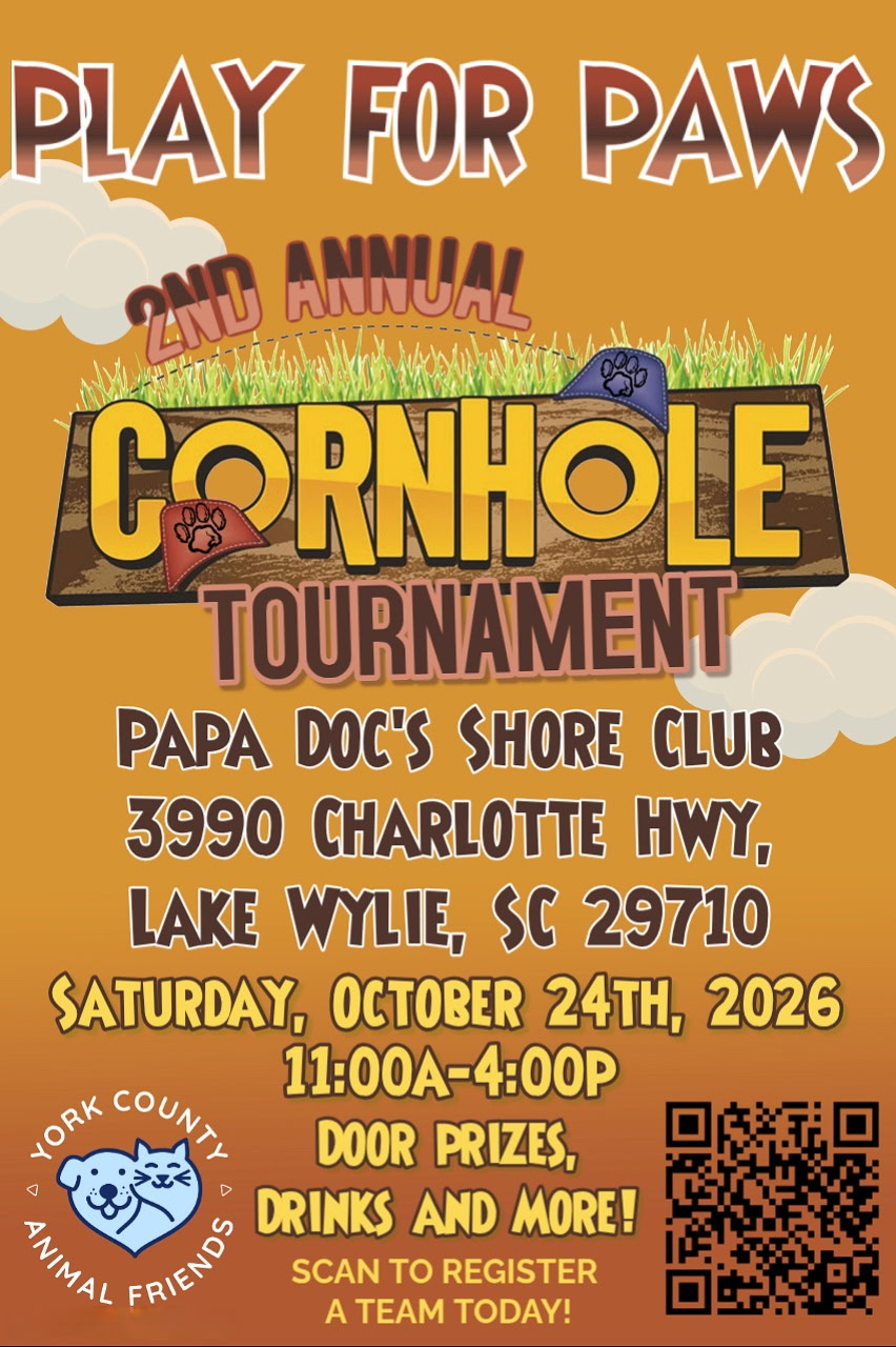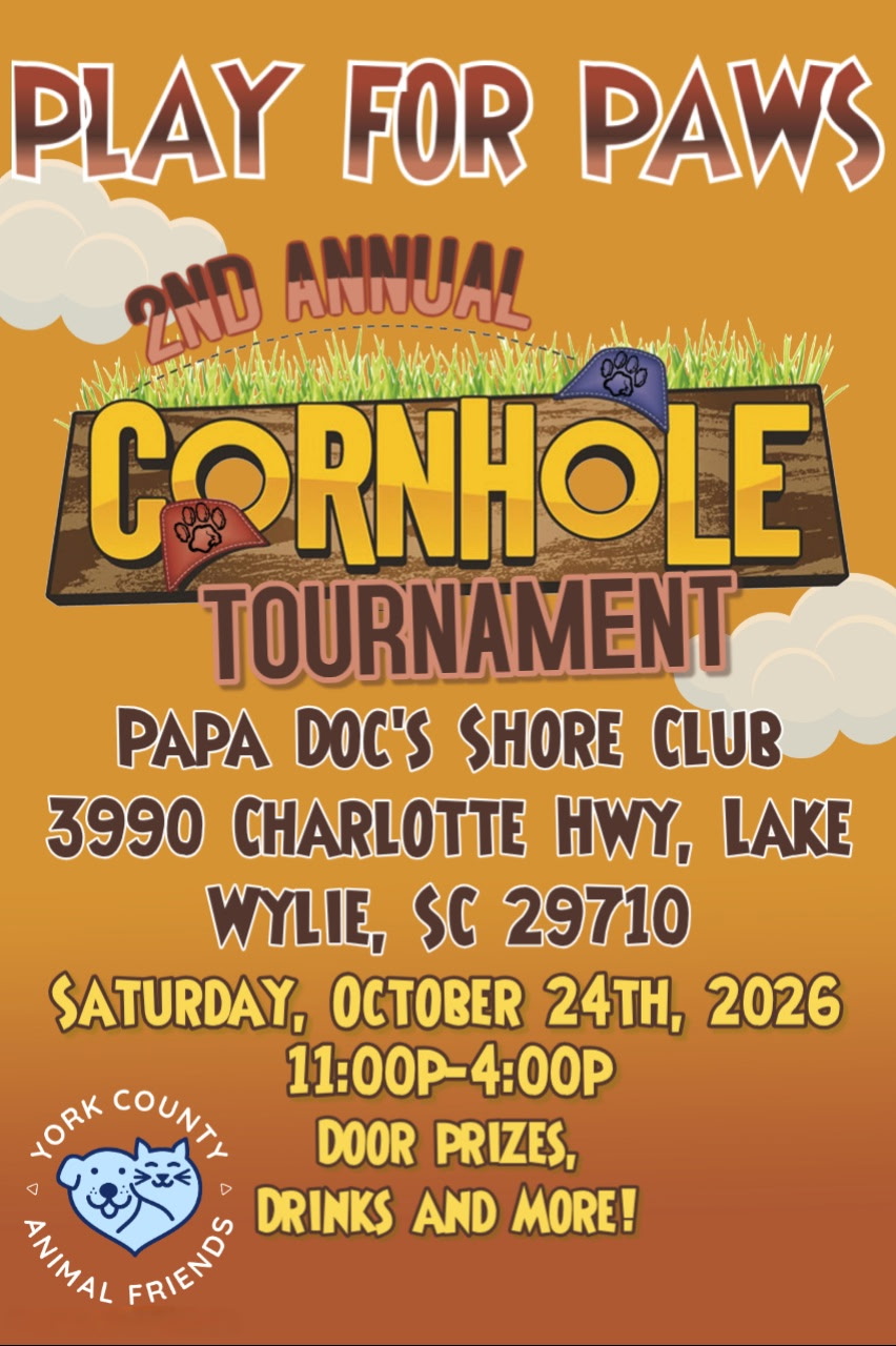 Join us on the shoreline at Papa Doc’s for a fun-filled afternoon of cornhole, cold drinks, great food, and furry friends, all for a great cause! Help us support the amazing work of the Friends of York County Animal Shelter while enjoying the beautiful fall weather, waterfront vibes, and some friendly competition.